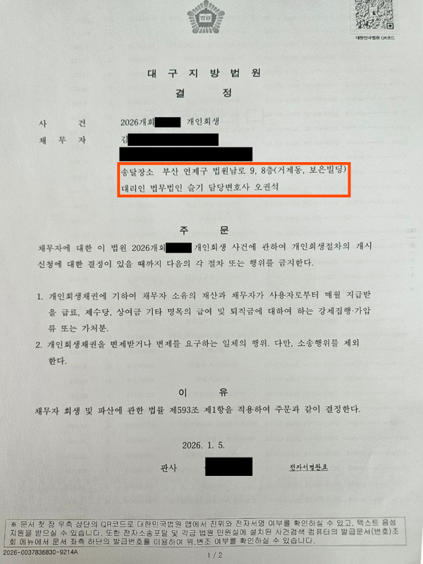 개인회생 사건에 관하여 개인회생절차의 개시 신청에 대한 결정이 있을 때까지