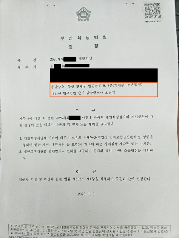 개인회생 사건에 관하여 개인회생절차의 개시 신청에 대한 결정이 있을 때까지