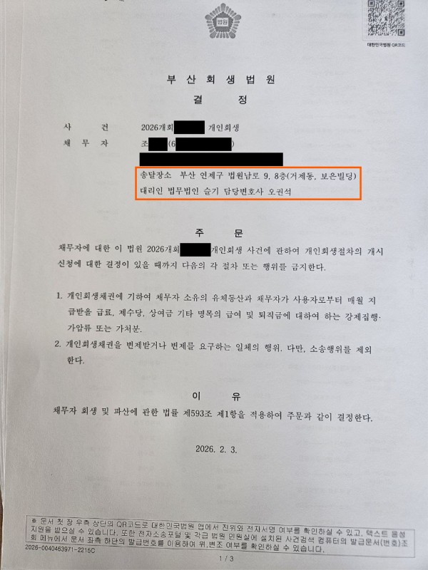 1. 개인회생채권에 기하여 채무자 소유의 재산과 채무자가 사용자로부터