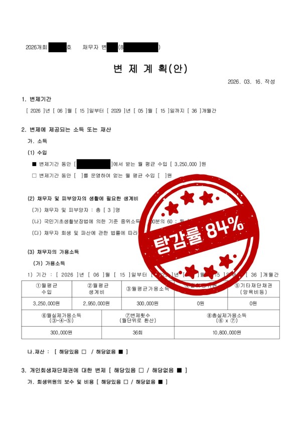 (탕감률 84%)